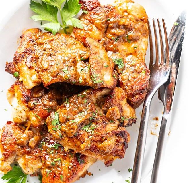 - 1 1/3 lb. Boneless skinless chicken thighs (~8 medium)